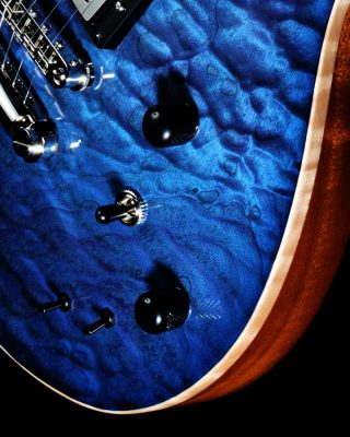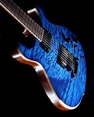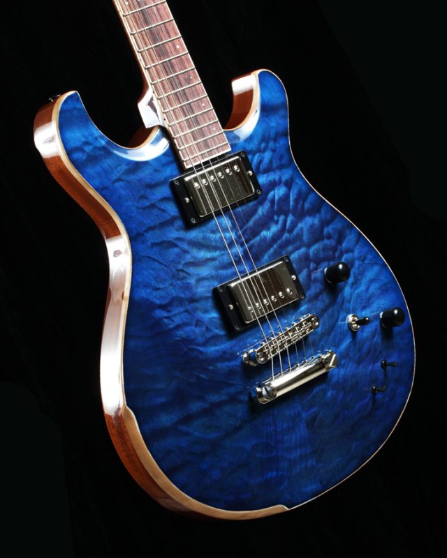 Blue Solidbody All images Copyright Michael G. Stewart Details Blue transparent solid body Flamed Port Orford Cedar Top Acoustics