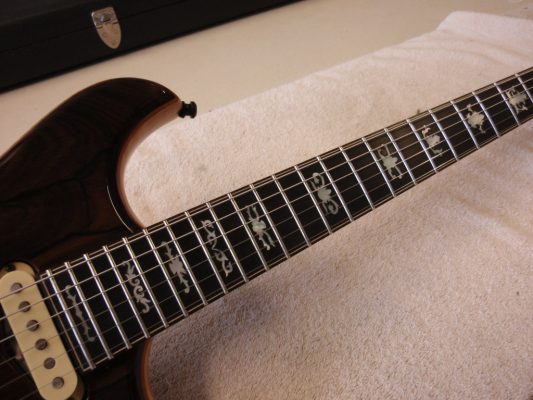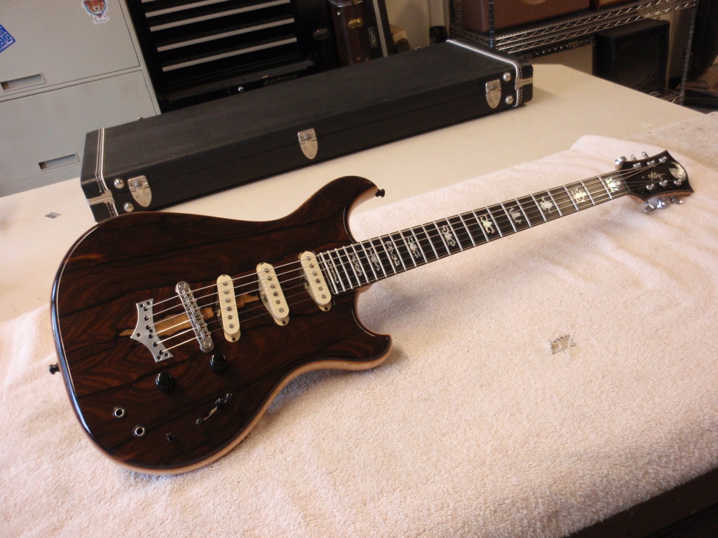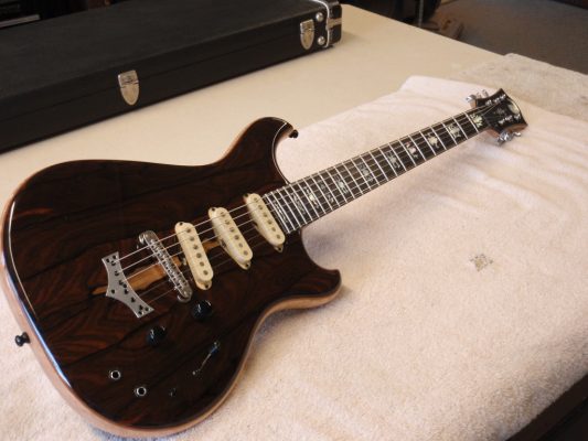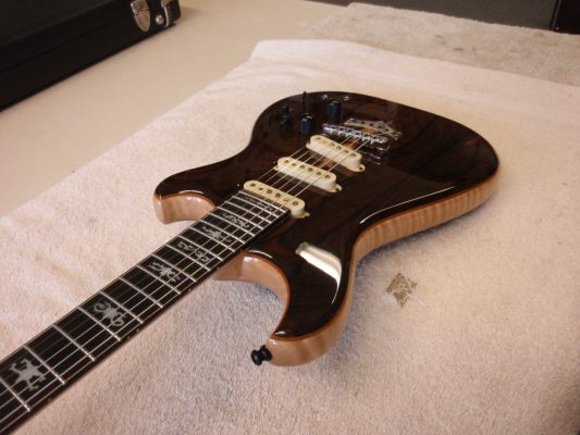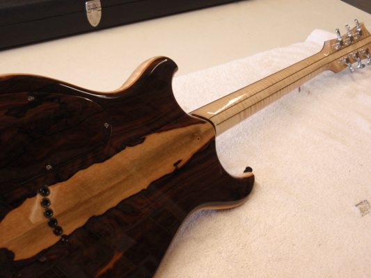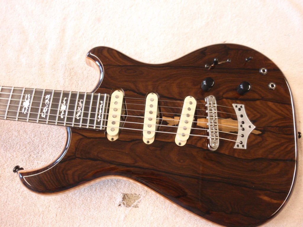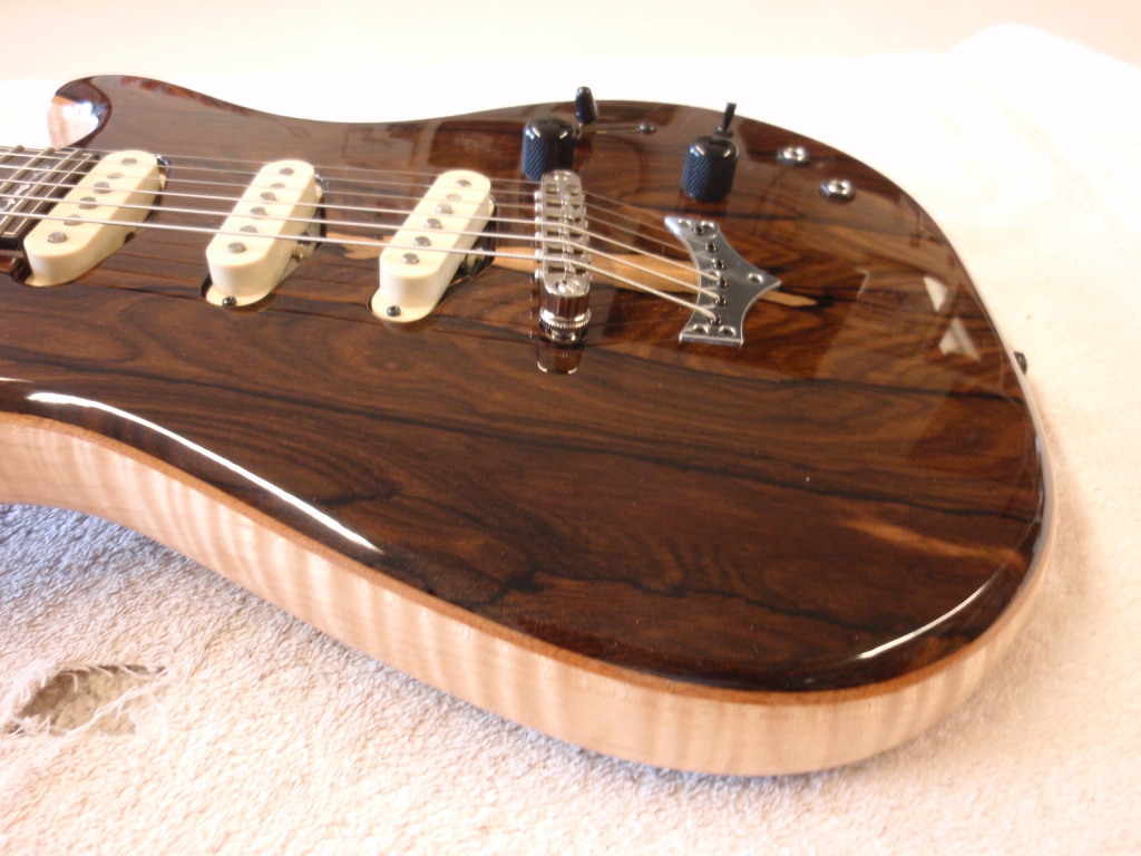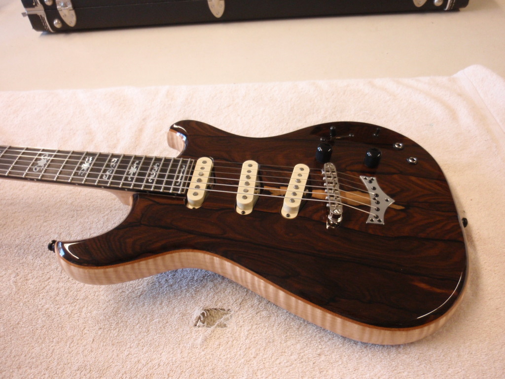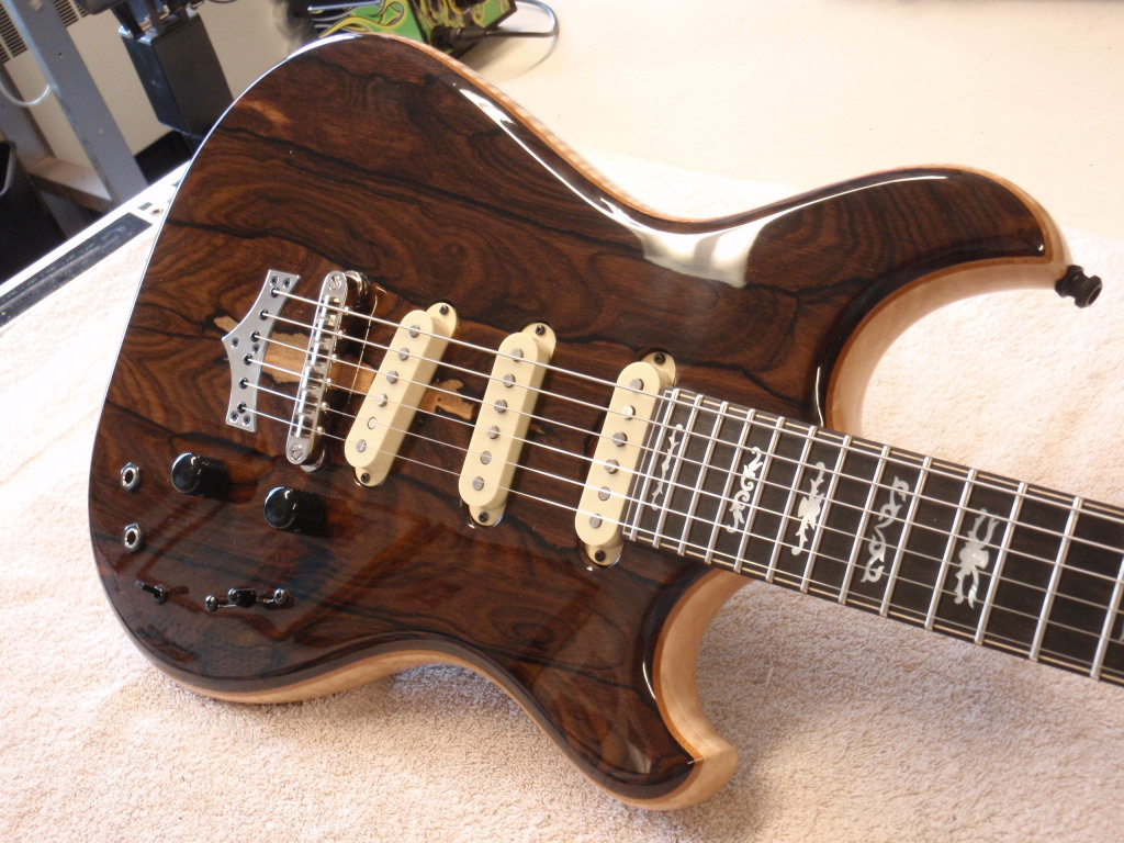 Custom Alembic Styled Solid Custom Alembic Styled Solid Details Custom Alembic Styled Solid Ziricote Top Natural Finish Matt-o-Caster Solid Body Wolfish